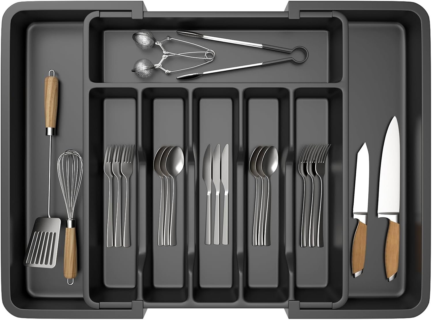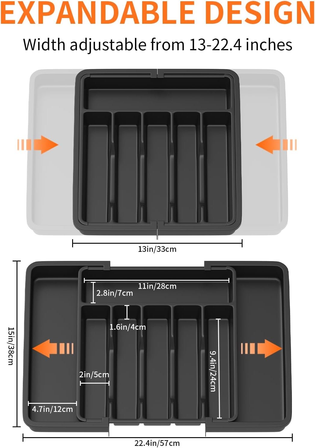 • Large Capacity: Organise your kitchen countertop and make more space with the cutlery drawer organiser. Comes with two expandable panels on the left and right to store more cutlery, utensils, and kitchen silverware.