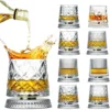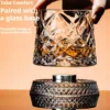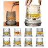 280ml 360 Degree Rotating Whiskey Glass Tumbler with Delicate Embossed Pattern Stable Decoupling Base Drinking Cup Drinkware