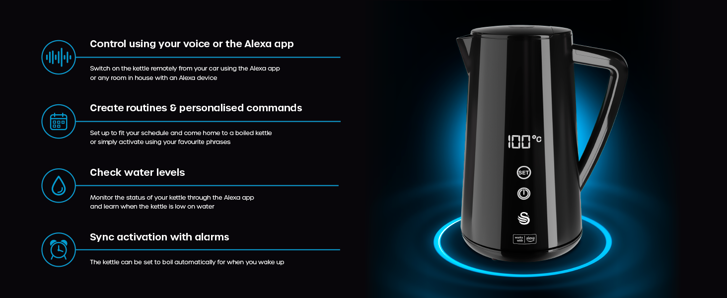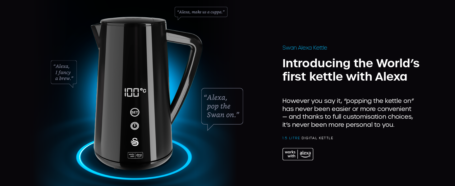 Be the first to review “Swan SK14650BLKN Alexa Smart Kettle – 1.5L Stainless Steel, LED Touch Display, Keep Warm Function, 1800W”