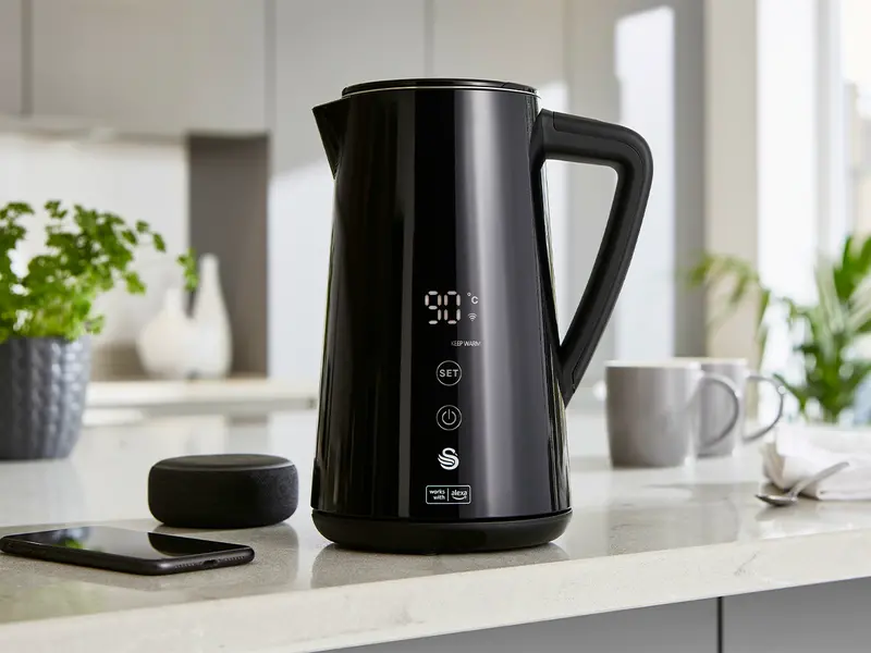Swan SK14650BLKN Alexa Smart Kettle – 1.5L Stainless Steel, LED Touch Display, Keep Warm Function, 1800W