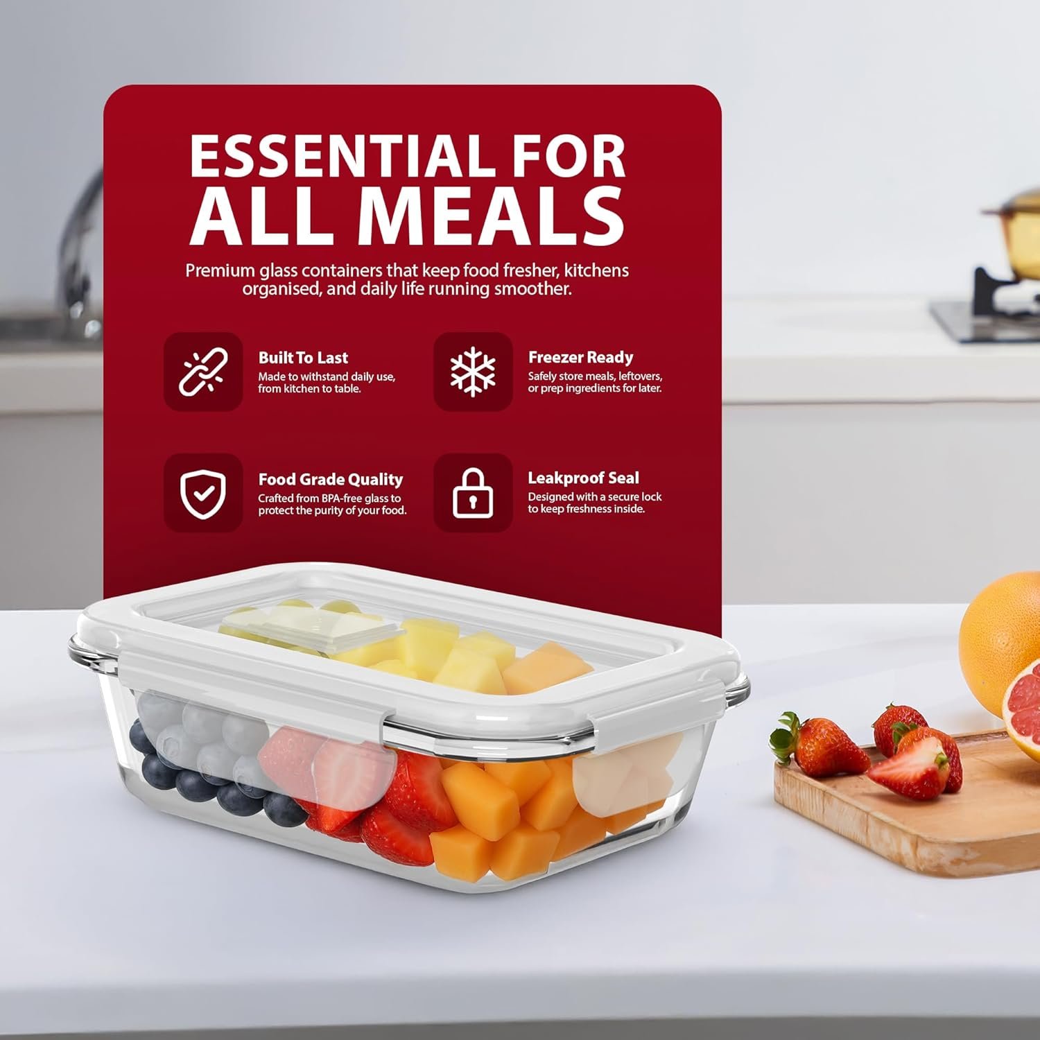 • LEAKPROOF AIRTIGHT LIDS FOR MAXIMUM FRESHNESS – Each container features a secure snap-lock lid and silicone seal to keep contents fresh and prevent leaks or spills. These glass storage containers with lids are perfect for both home use and on-the-go lifestyles.